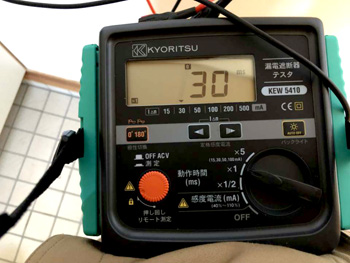 漏電ブレーカーのテストを行うと正常に動作しない事が判明!